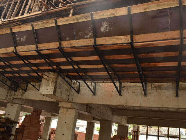 - Sistema de escoramento, com Escoras Metálicas, Forcado (Cabeçal), Tripé de Fixação, Cruzeta.